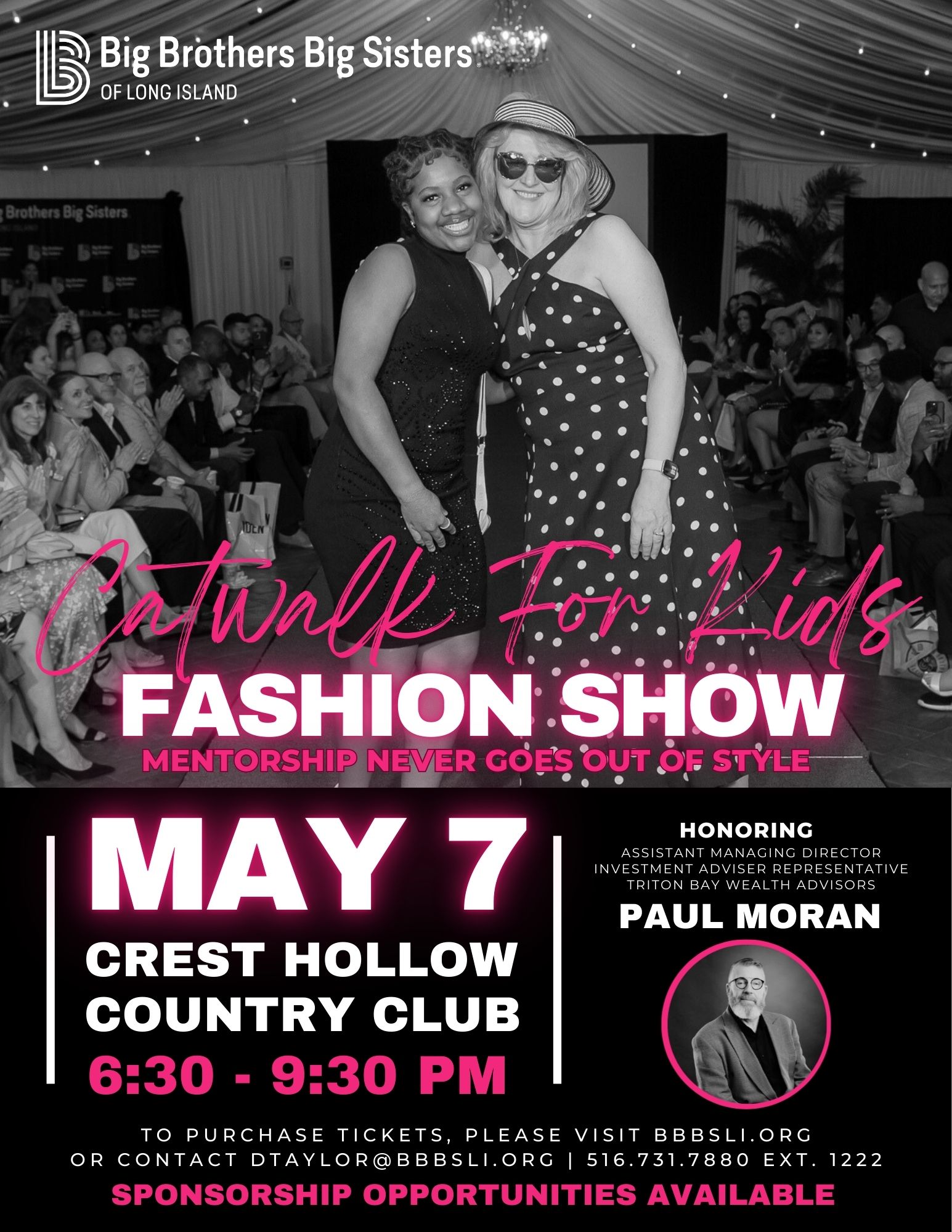 CATWALK for Kids’ Fashion Show 2026 CLICK HERE TO REGISTER + Add to Google Calendar + iCal / Outlook export 00 days 00 hours 00 minutes 00 seconds Date May 07 2026 Time 6:30 pm - 9:30 pm Cost $120.00 Location Crest Hollow Country Club Website https://www.cresthollow.com/ Category Fashion Show Organizer Danielle Taylor Phone 516.731.7880 ext. 1222 Email dtaylor@bbbsli.org Other Organizers Meredith Michaels Phone 516.731.7880 ext. 1232 Email mmichaels@bbbsli.org Share this event